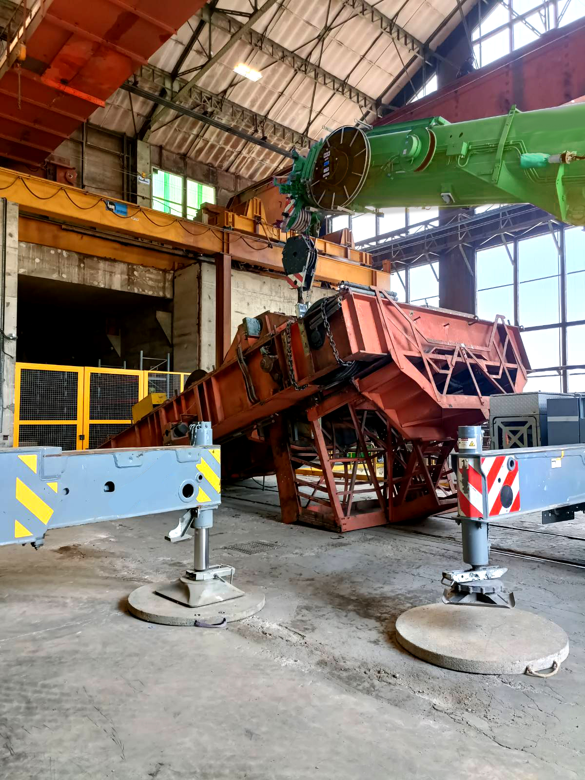 Ce chantier a impliqué la manipulation précise de plusieurs composants, dont les poids oscillaient entre 8 et 51 tonnes, pour un poids total démonté de 162 tonnes. Face à cette complexité technique, nous avons mobilisé des équipements de levage performants :