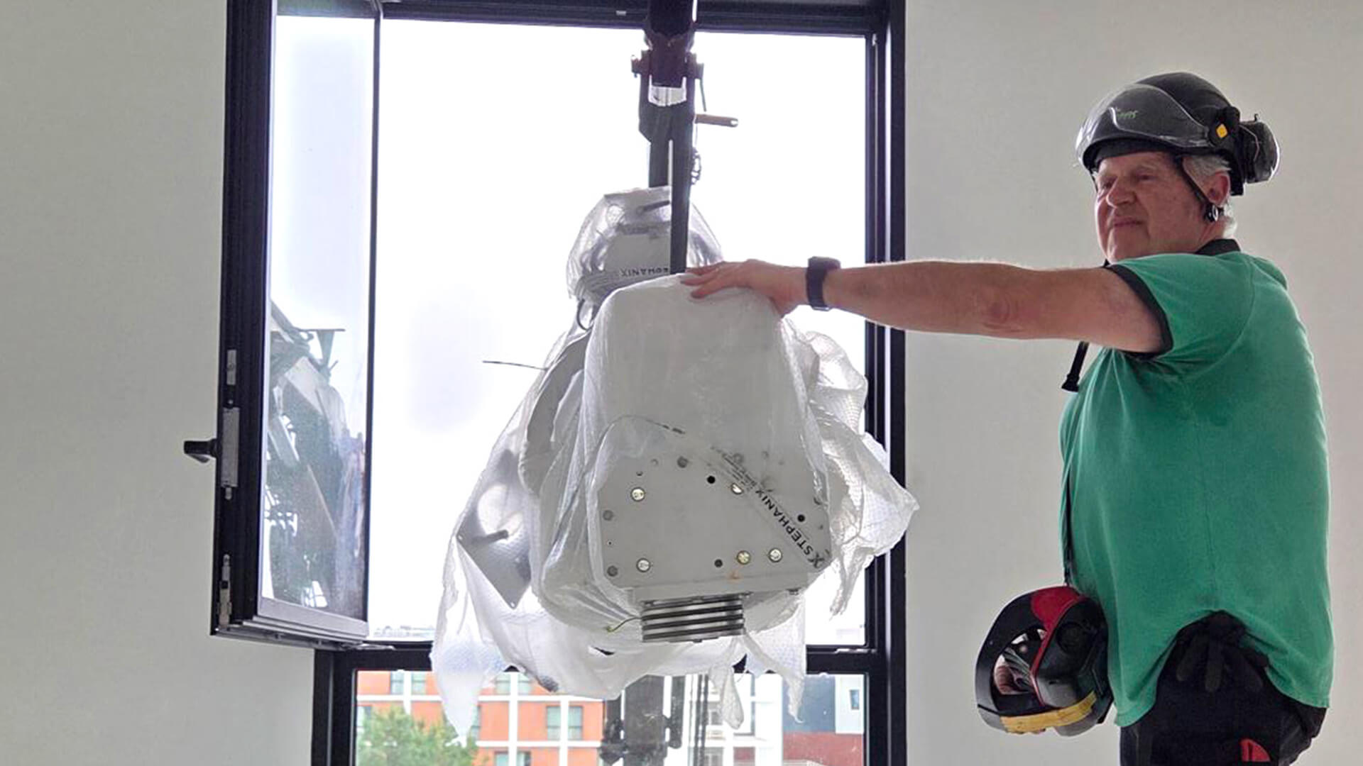 Le grutage d’un équipement médical impose un niveau d’exigence particulièrement élevé. Lors de cette opération, plusieurs contraintes ont été prises en compte :